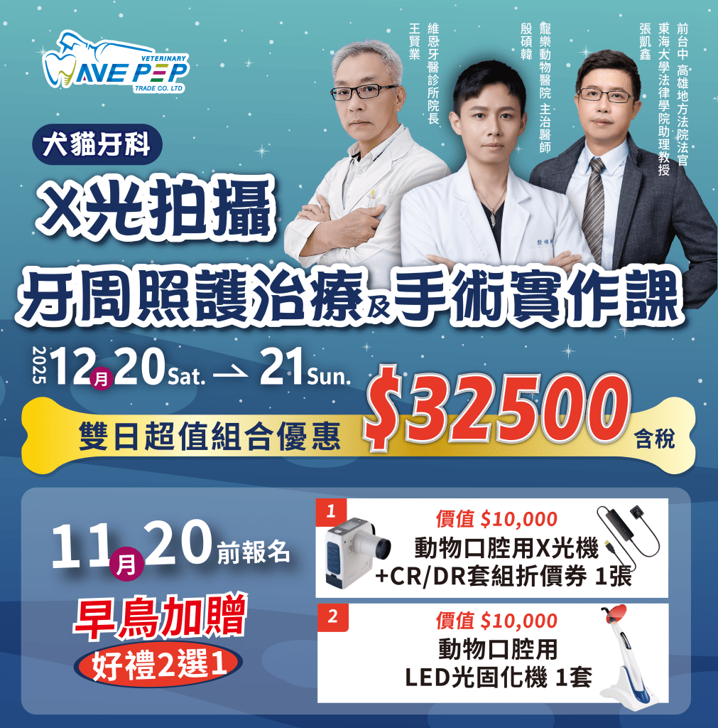 犬貓牙科X光實作課 開課日期:2025.12.20(六)09:00~16:10